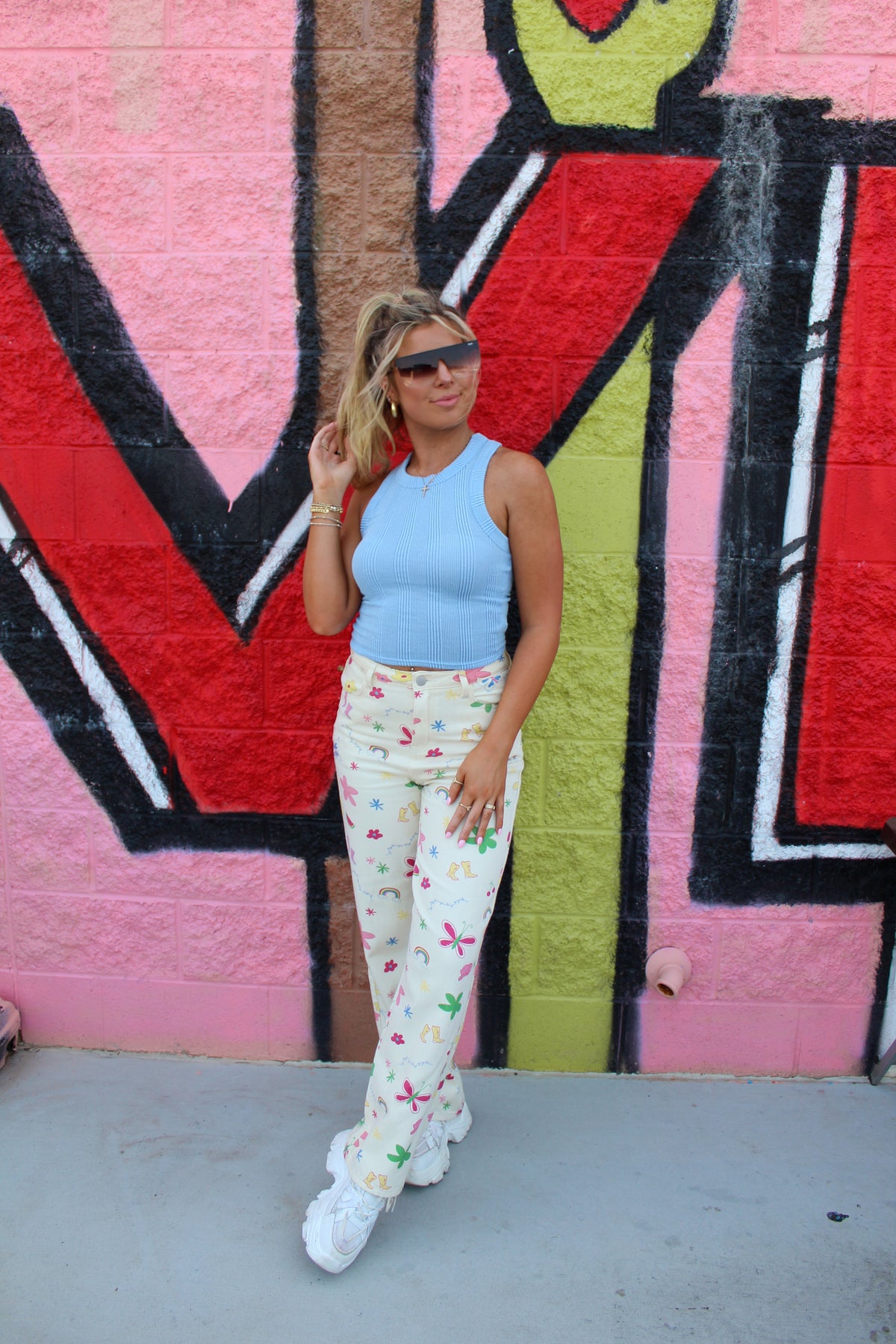Light Blue Silver Star Pattern Tank Top - Kendry Collection Boutique