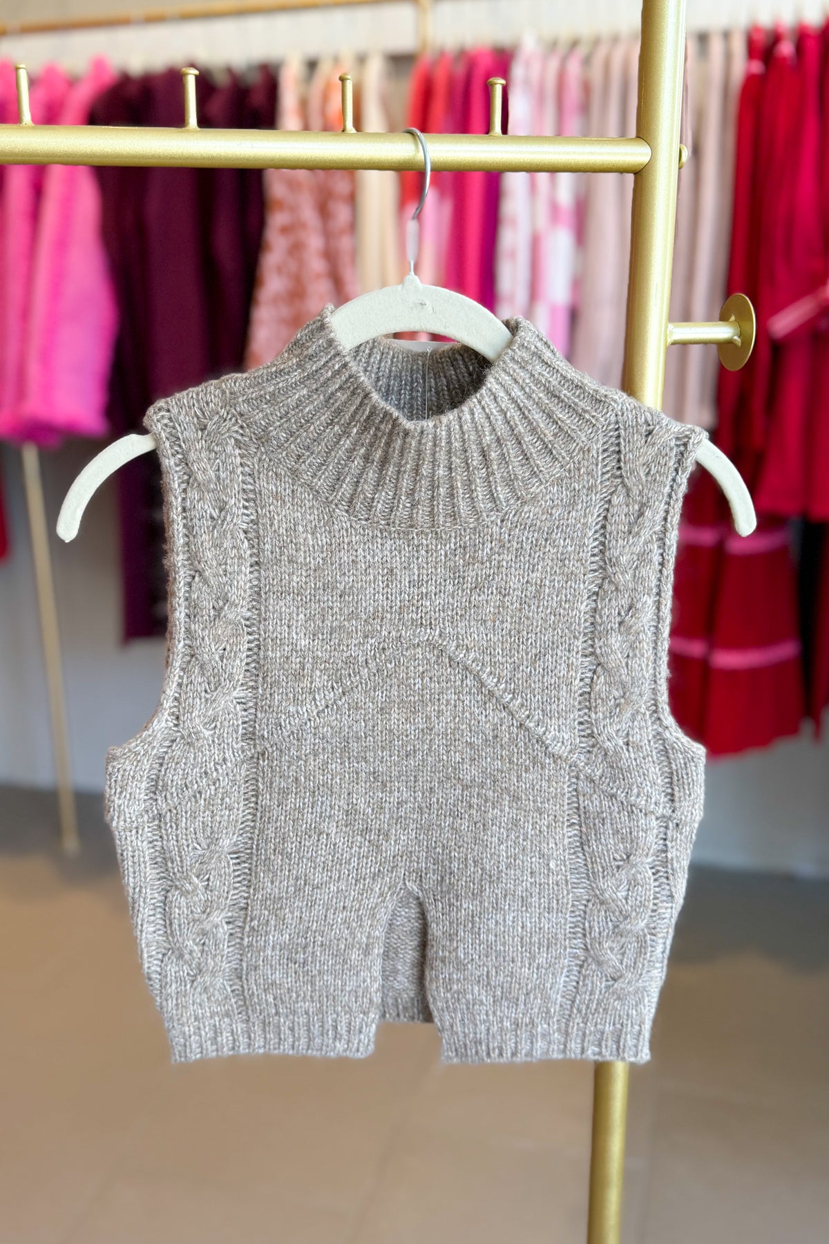 Mocha Mock Neck Cutout Sleeveless Sweater