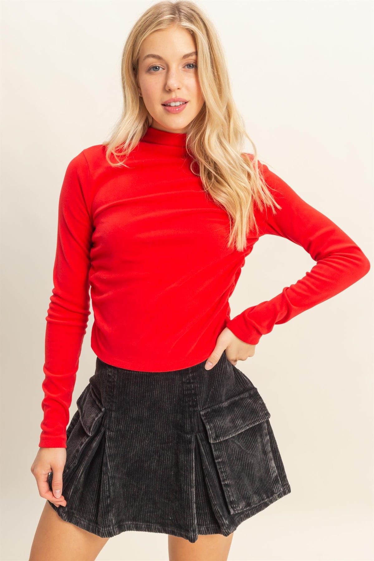 Red Mock Neck Knit Top