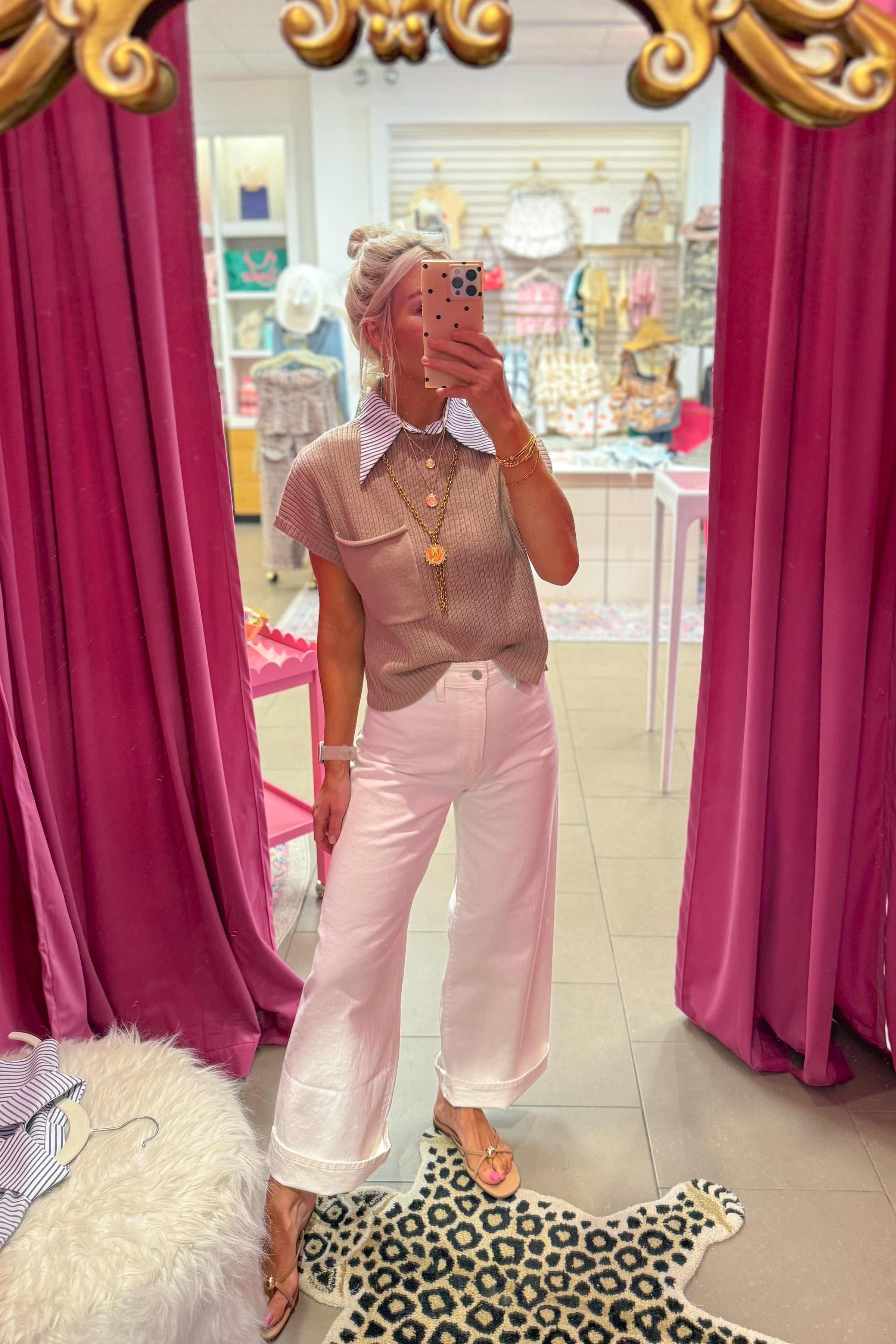 Light Mocha Mock Neck Ribbed Sweater Vest